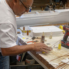 The beautiful new Lido House Hotel in Newport Beach commissioned us to build a full scale 5' model of John Wayne's famous yacht, the Wild Goose. The Wild Goose is still around today in Newport Beach - however the challenge was to build the model to reflect the way the boat was constructed when John Wayne owned it, not the way it is today for charters.